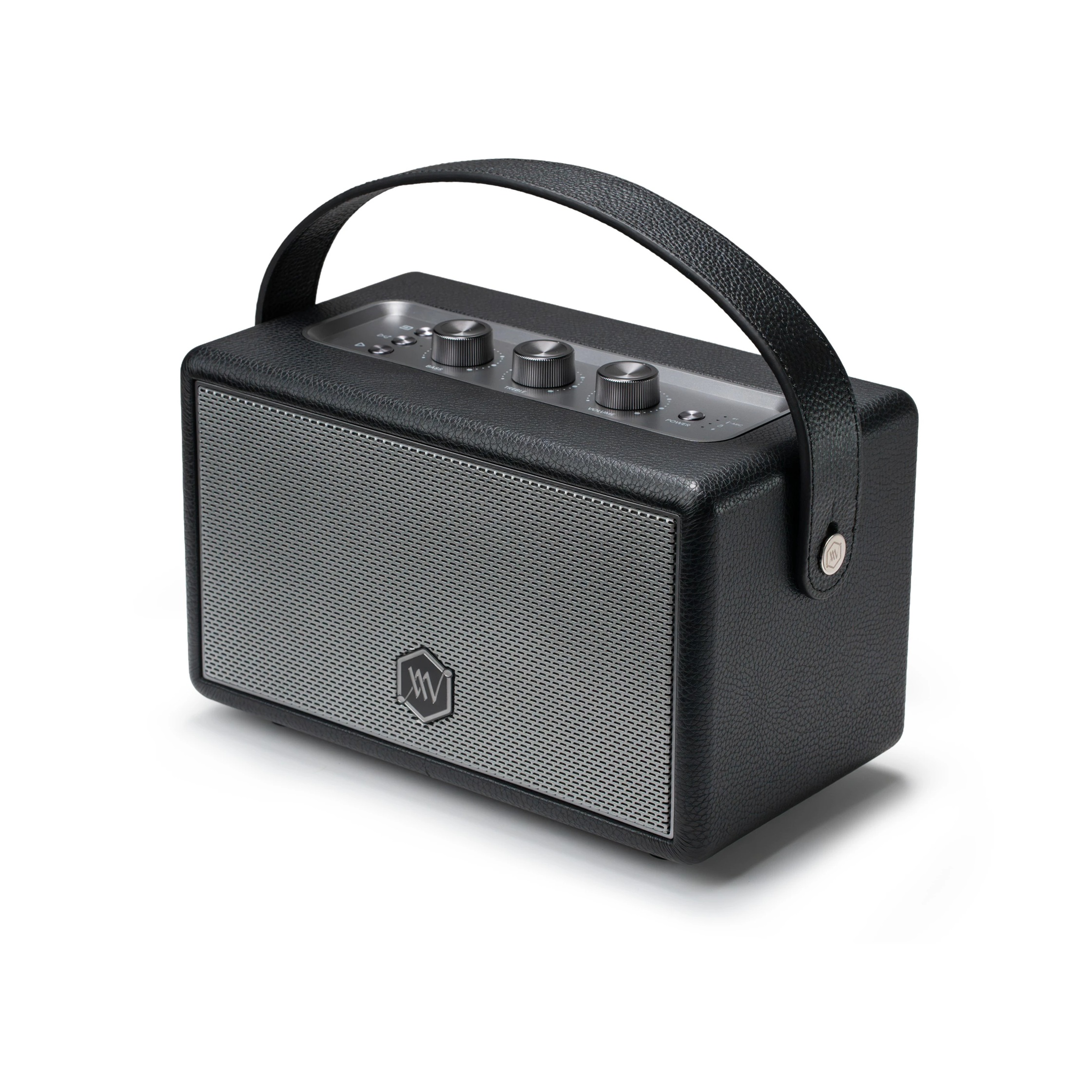 Alpha Works W89 gây ấn tượng với ngoại hình vintage: thân loa bọc da cao cấp, ê-căng kim loại phủ sơn tĩnh điện. Các núm vặn analog giúp tùy chỉnh âm lượng, bass, treble trực quan.