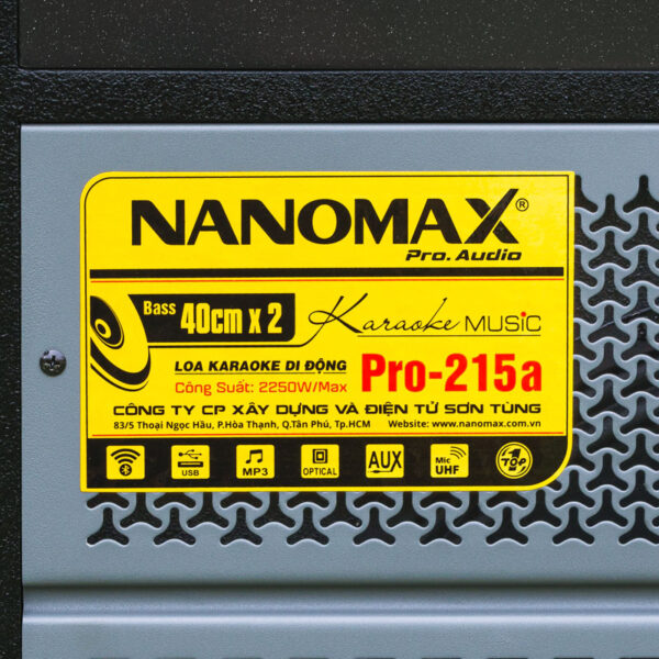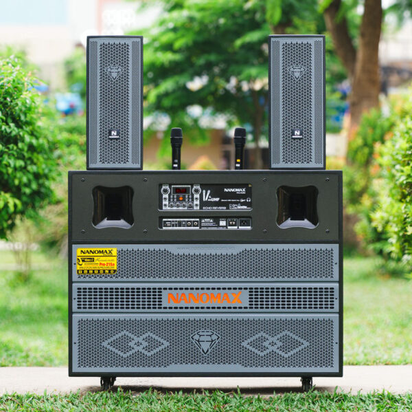 Nanomax Pro-215A là mẫu loa kéo 4 tấc đôi có công suất lớn với điểm nhấn là thiết kế 2 Column có thể gập lại được gọn gàng và hiện đại. Sở hữu 3 đường tiếng gồm 2 Bass 40cm, 4 loa Mid và 4 Treble họng còi,… Nanomax Pro-215A có thể đáp ứng được nghe nhạc, karaoke trong nhà và cả ngoài trời, phục vụ các bữa tiệc lớn.