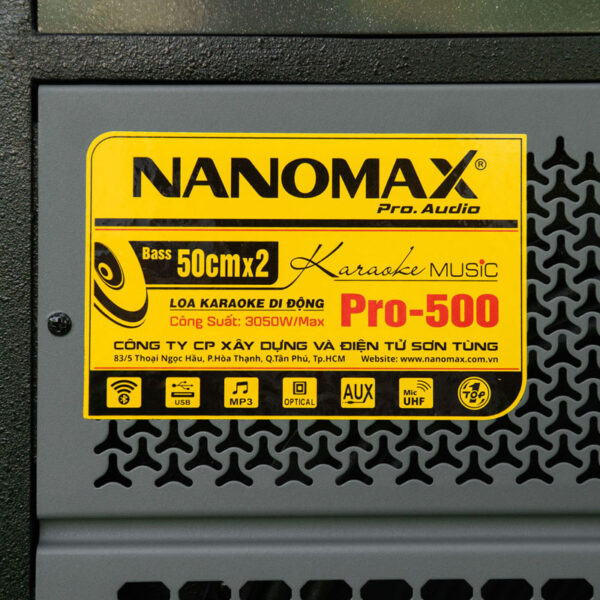 Nanomax Pro-500 là dòng loa kéo Bass đôi 50cm, 2 Mid 16cm và 2 Treble còi. Nanomax Pro-500 mang đến âm thanh sống động, dải bass sâu lực, mid rõ ràng và treble vang sáng. Đáp ứng hoàn hảo cho nhu cầu karaoke và giải trí di động.