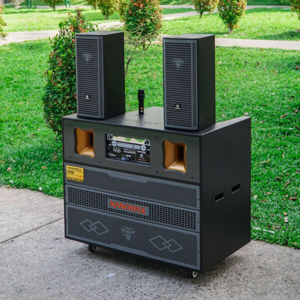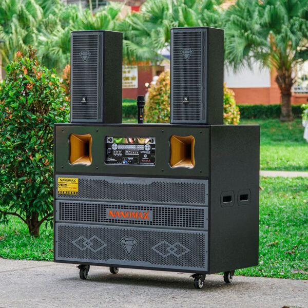 Nanomax Pro-500A được trang bị 2 bass 50cm, công suất mạnh mẽ 3200W, Pro-500A mang lại âm trầm sâu, lực đánh mạnh. Kèm theo micro UHF đổi tần số linh hoạt, pin sạc tiện dụng, cho giọng hát luôn rõ ràng và ổn định.