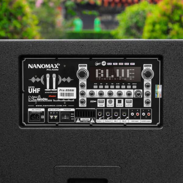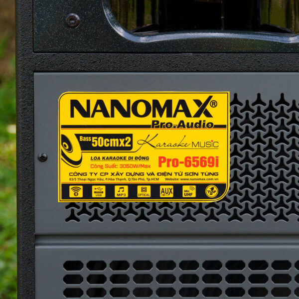 Loa kéo Nanomax Pro-6569i thuộc dòng loa Karaoke Bass đôi, với cấu hình gồm 2 Bass 5 tấc, 2 Mid 16cm và 2 Treble họng Array, với công suất tối đa lên đến 3050W. Loa vừa có thể dùng điện AC-220V vừa có thể dùng bình Ắc qui 12V, nên rất tiện dụng cho việc hát trong nhà cũng như ngoài trời.