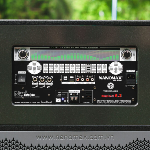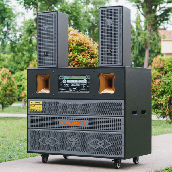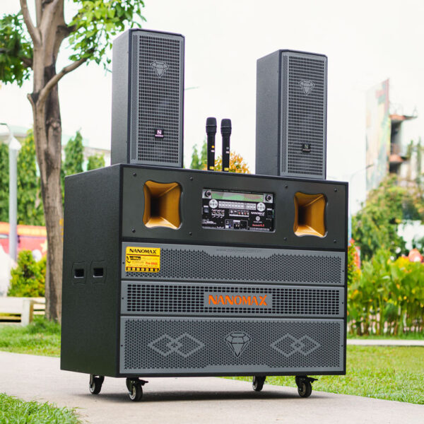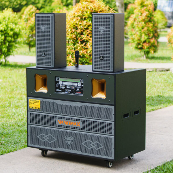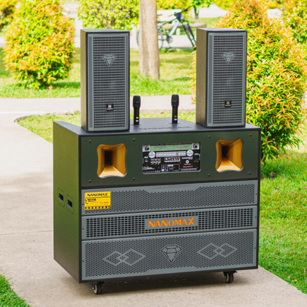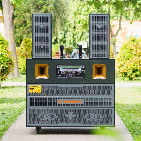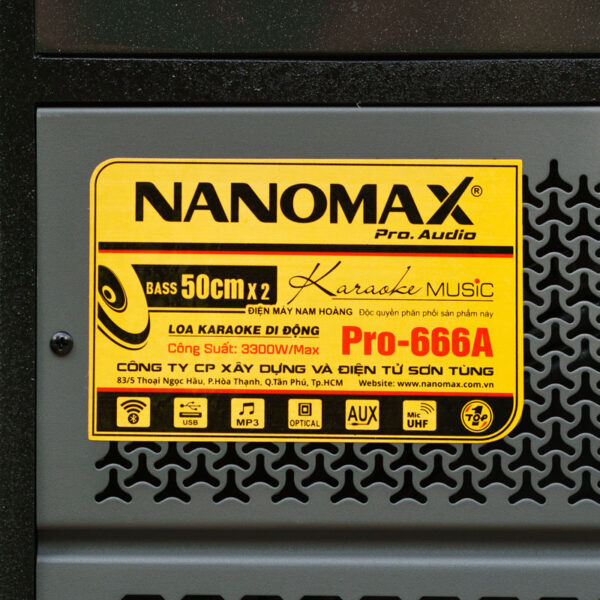 Nanomax Pro-666A được trang bị 2 bass 50cm, công suất mạnh mẽ 3300W, Pro-666A mang lại âm trầm sâu, lực đánh mạnh. Kèm theo micro UHF đổi tần số linh hoạt, pin sạc tiện dụng, cho giọng hát luôn rõ ràng và ổn định.