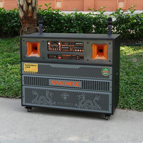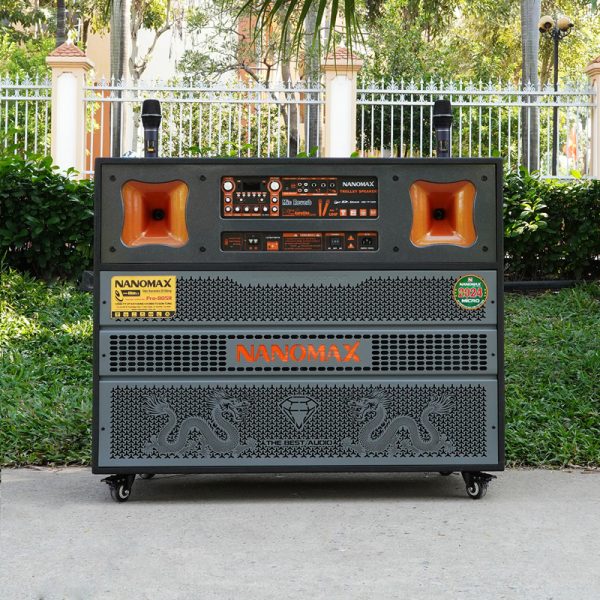 Nanomax Pro-805R là mẫu loa kéo 4 tấc đôi có công suất lớn với điểm nhấn là thiết kế 2 hình rồng trên mặt lưới giúp loa nổi bật hơn. Sở hữu 2 đường tiếng gồm 2 Bass 40cm, 2 Treble họng còi,… Nanomax Pro-805R có thể đáp ứng được nghe nhạc, karaoke trong nhà và cả ngoài trời, phục vụ các bữa tiệc lớn.