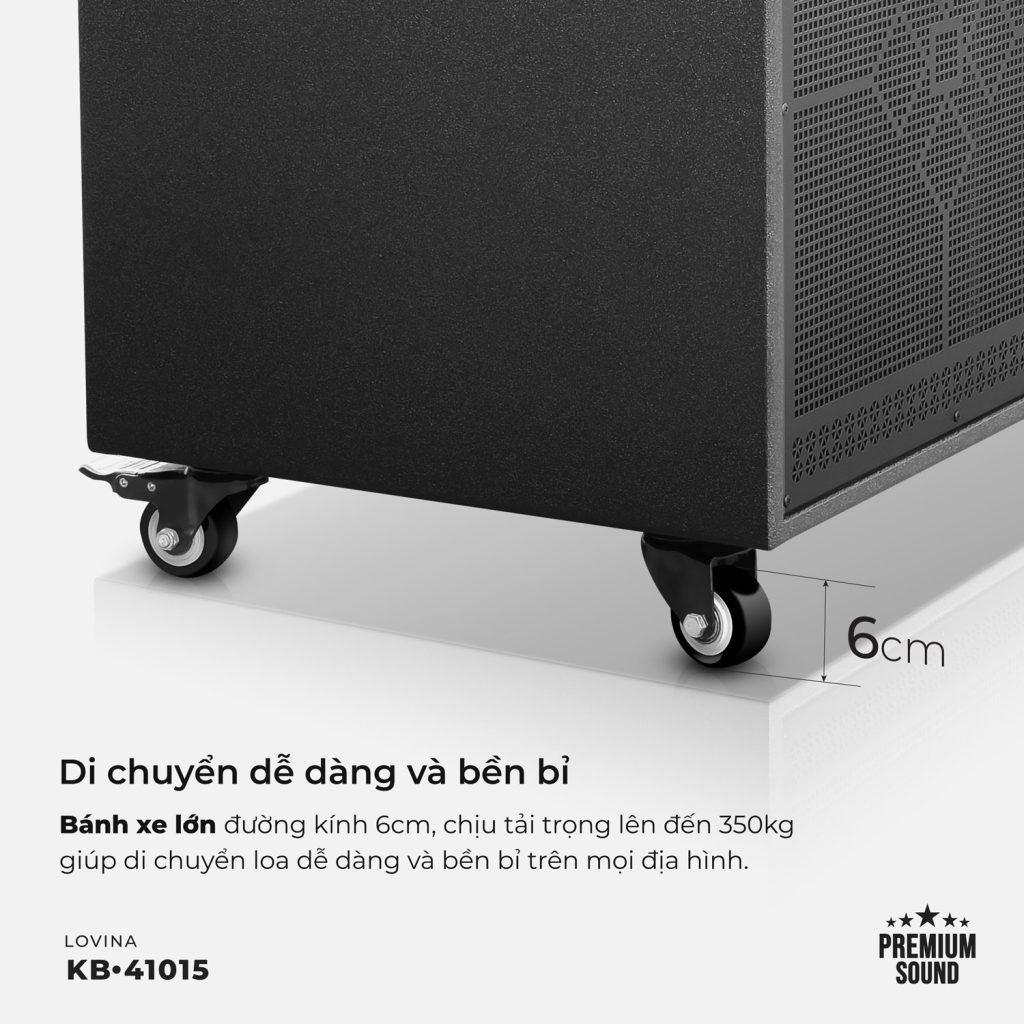 Loa karaoke di động Lovina KB-41015 | Bánh xe đường kính lớn 6cm