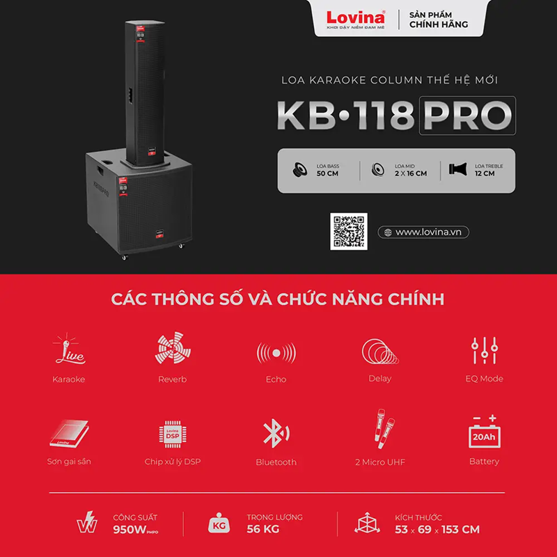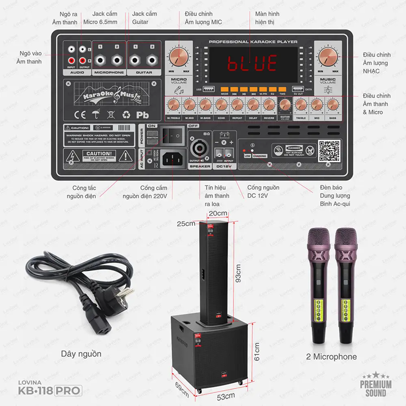 Loa karaoke column Lovina KB-118PRO | Các thông số và chức năng chính