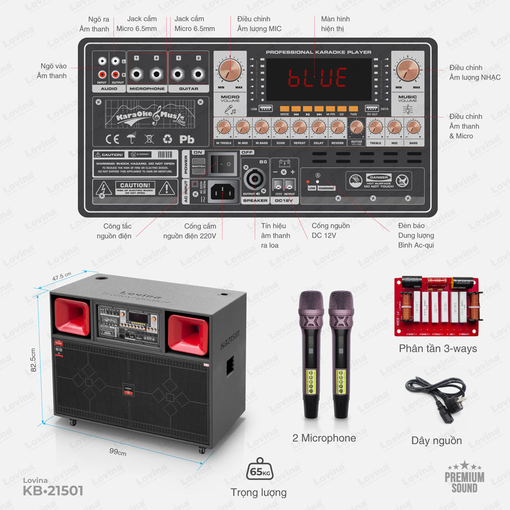 Loa karaoke di động thế hệ mới Lovina KB-21501 | Thông số chi tiết