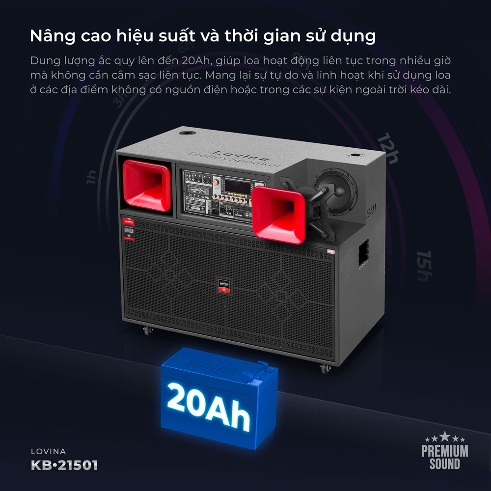 Loa karaoke thế hệ mới Lovina KB-21501 | Bình acquy 20Ah