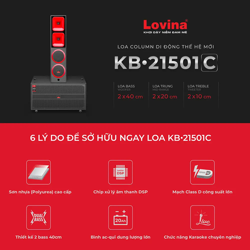 Loa column karaoke di động Lovina KB-21501C | cấu hình loa