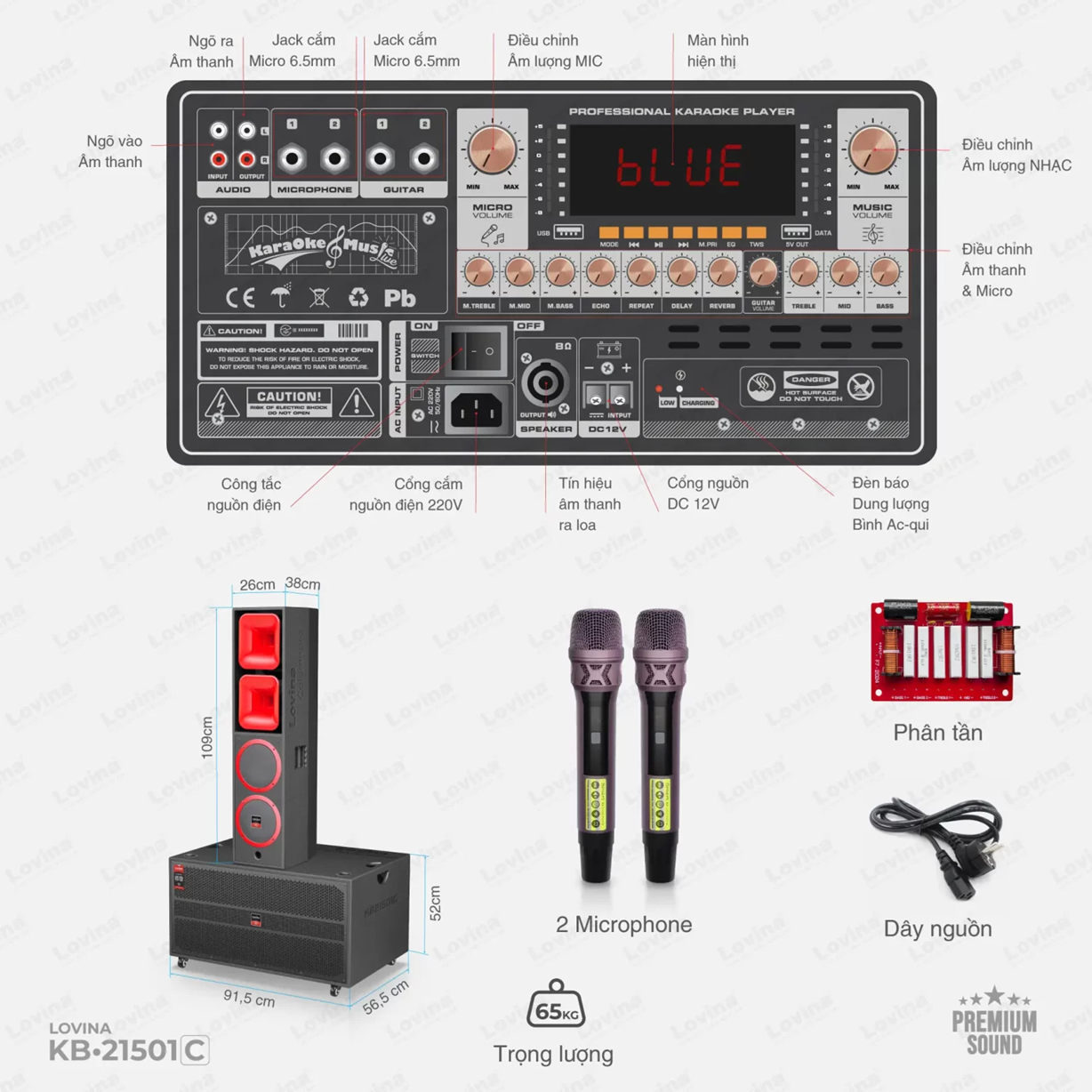 Loa karaoke di động Lovina KB-21501C | Thông tin chi tiết