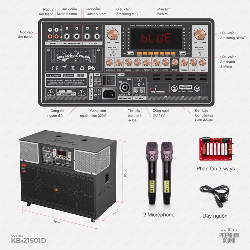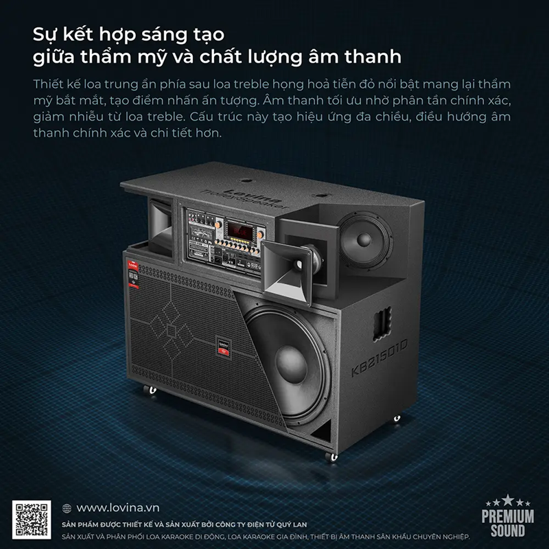 Loa kéo KB-21501D là dòng loa thế hệ mới nhất của Lovina, mang đến sự đột phá trong thiết kế và chất lượng âm thanh. Với cấu trúc tối ưu gồm 2 bass 40cm, 2 mid 20cm và 2 treble 10cm, KB-21501D không chỉ mang lại công suất mạnh mẽ mà còn đảm bảo âm thanh chi tiết, rõ ràng ở mọi dải tần.