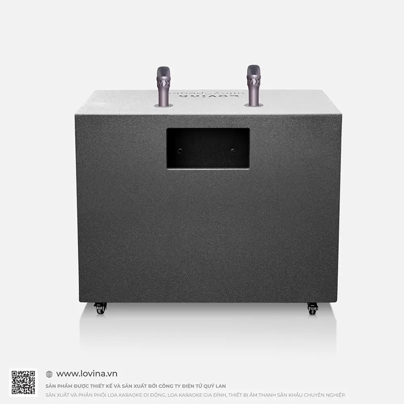 Với thiết kế đặc biệt, loa trung ẩn phía sau loa treble và được xoay góc 30° hướng ra hai bên giúp mở rộng góc phủ âm, tạo hiệu ứng âm thanh đa chiều. Đây là sự lựa chọn hoàn hảo cho những ai đang tìm kiếm một chiếc loa karaoke di động công suất lớn, phù hợp cho cả nhu cầu gia đình và sự kiện ngoài trời.