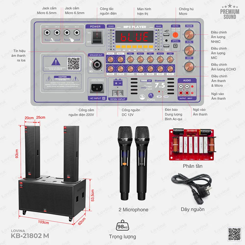 | Model | Loa karaoke di động Lovina KB-21802M |