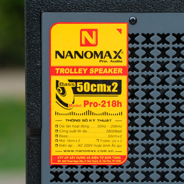 Nanomax Pro-218h là mẫu loa kéo 5 tấc đôi đứng với thiết kế module array bên trên có thể tháo rời. Sở hữu 3 đường tiếng gồm 2 Bass 50cm, 2 loa Mid 16cm và 2 Treble họng còi,… Nanomax Pro-218h là mẫu karaoke array di động chuyên nghiệp có thể đáp ứng được hầu hết thể loại nhạc và karaoke, trong nhà và cả ngoài trời, phục vụ các bữa tiệc trên 5 bàn.