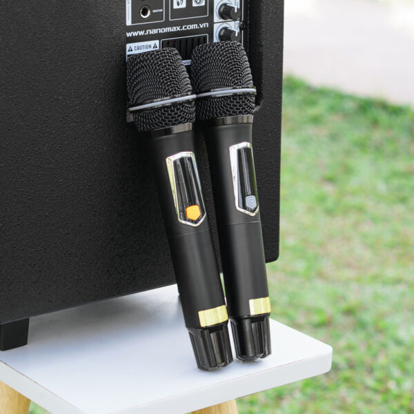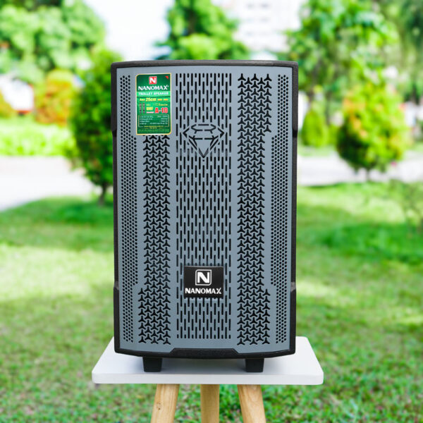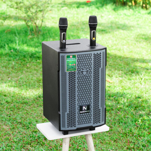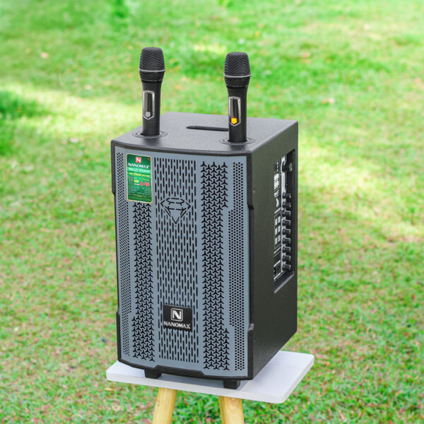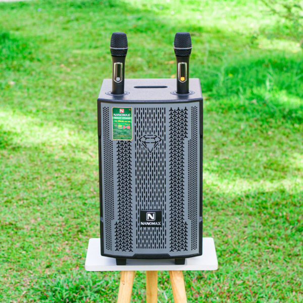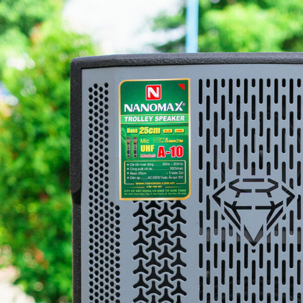 Nanomax A-10 là phiên bản loa karaoke có kích thước nhỏ gọn, được trang bị 2 micro không dây UHF. Loa kéo mini Nanomax A-10 sở hữu công suất 350w, loa 2 đường tiếng gồm 1 bass 25cm và 1 treble còi. Nanomax A-10 phù hợp hát karaoke trong phòng có diện tích vừa và nhỏ.