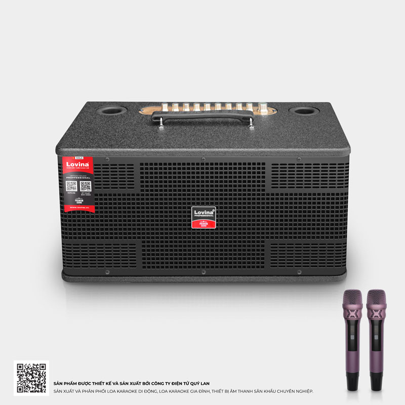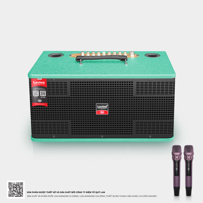 Lovina L8616 là dòng loa karaoke xách tay sở hữu công suất 350W, được trang bị 2 bass 16cm, 1 mid 12cm và 5 treble 10cm. Cấu hình này mang đến dải âm tròn đầy, mạnh mẽ, đủ sức khuấy động những buổi ca hát tại nhà hay không gian ngoài trời. Bình ắc-quy 9Ah giúp loa hoạt động bền bỉ suốt nhiều giờ mà không lo gián đoạn.